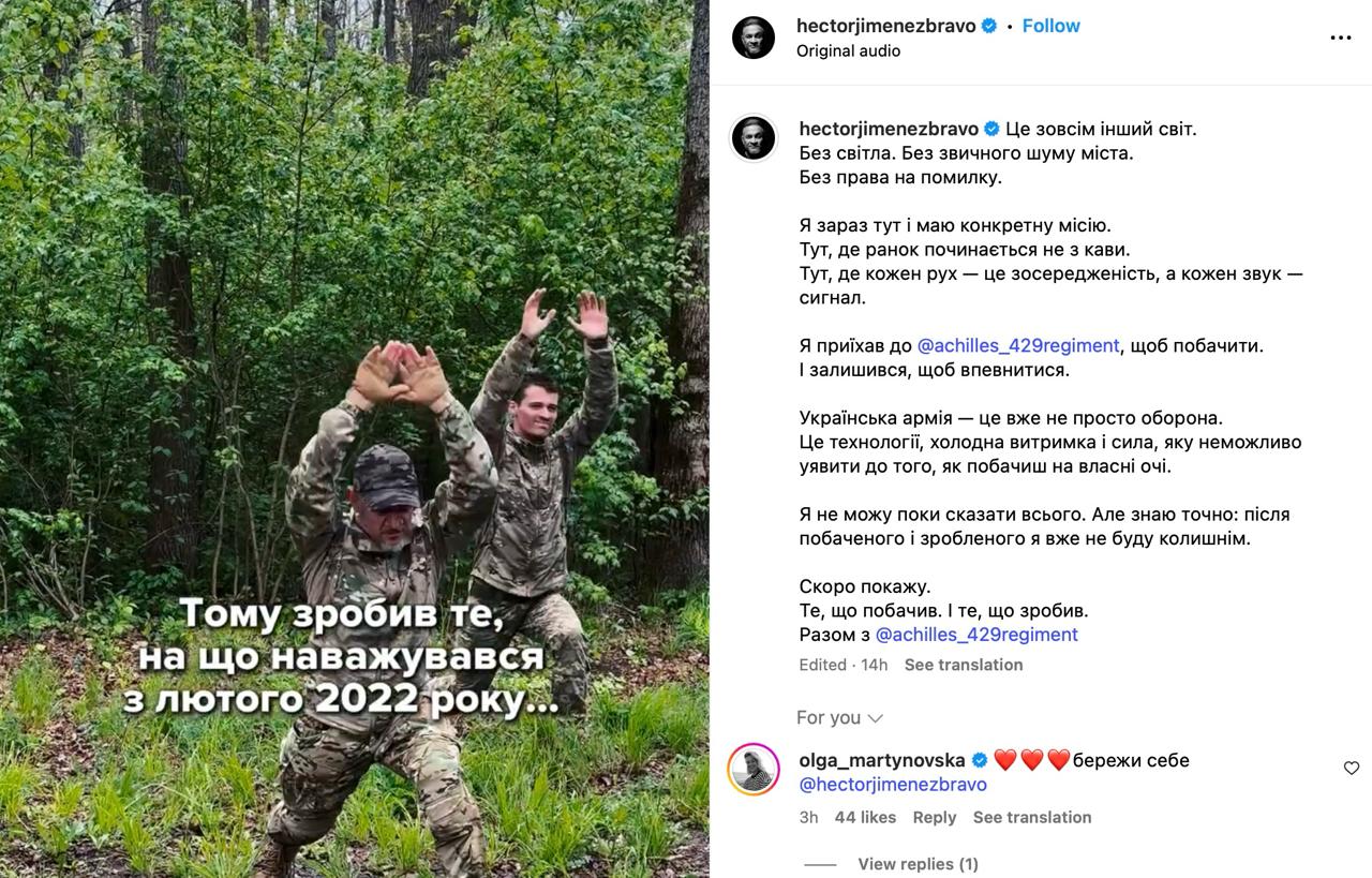 Відомий шеф-кухар колумбійського походження, який вже багато років живе у Києві, Ектор Хіменес-Браво натякнув, що мобілізувався до ЗСУ. Про це суддя проєкту "Майстер шеф" розповів у своєму Instagram.